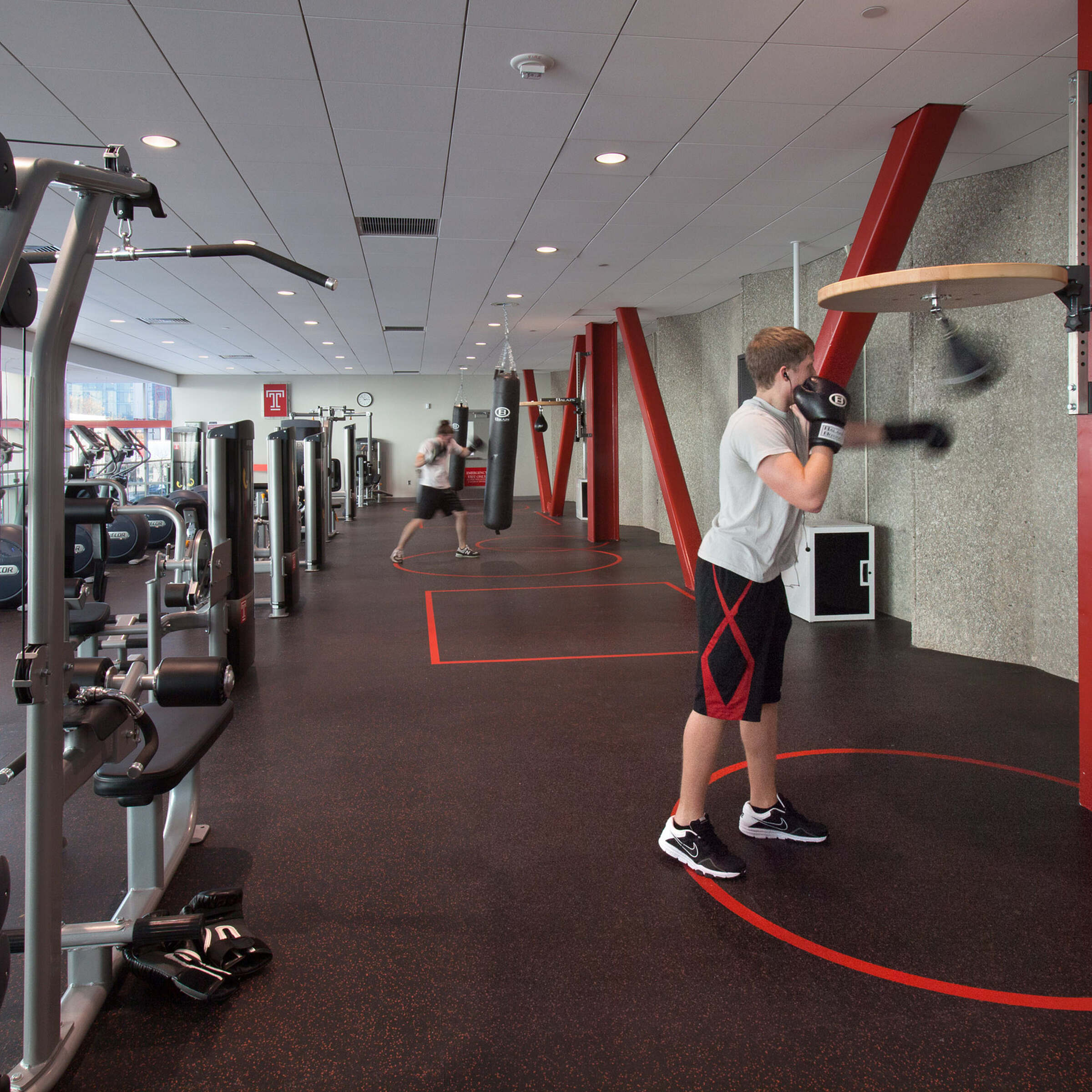 This new level provides regulation practice courts for both Temple’s men’s and women’s basketball teams as well as locker rooms, sports medicine center, weight room, Athletic office suite, Team room, and Sports Hall of Fame. Also included on this floor is a four-court gymnasium for recreational use, a Campus Recreation office suite and multi-purpose rooms.