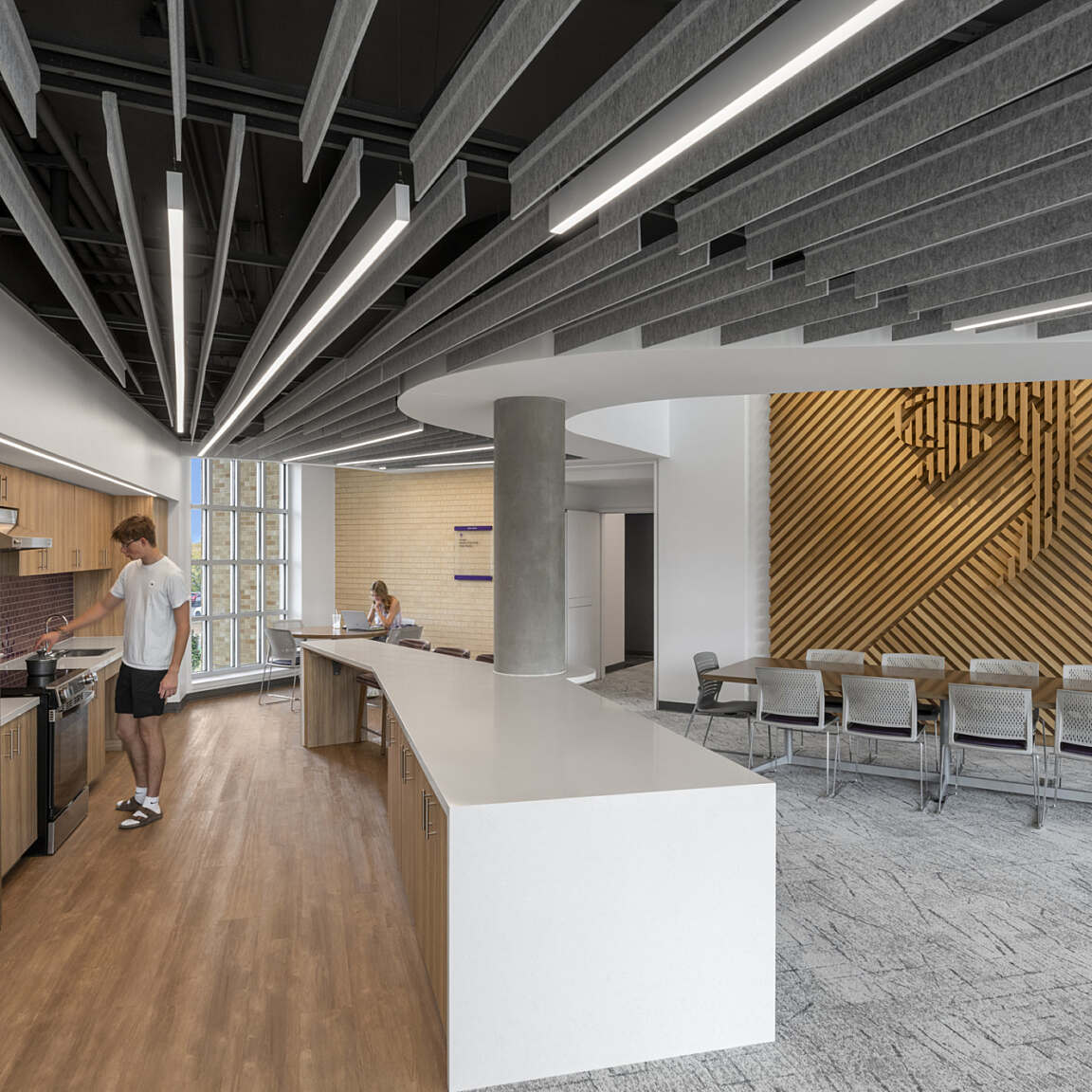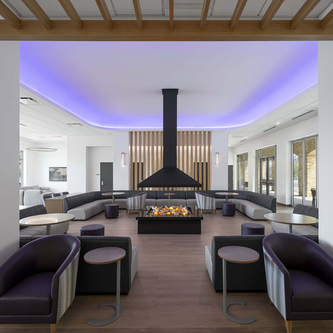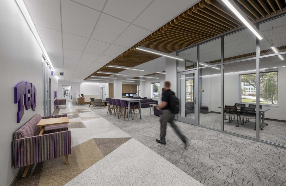 Additional program elements include restrooms and support spaces to enhance the overall student experience. Site improvements feature lush landscaping and integrated hardscape elements, creating inviting outdoor spaces that harmonize with the campus environment. This project exemplifies Texas Christian University's dedication to delivering state-of-the-art facilities that support student life and academic success.