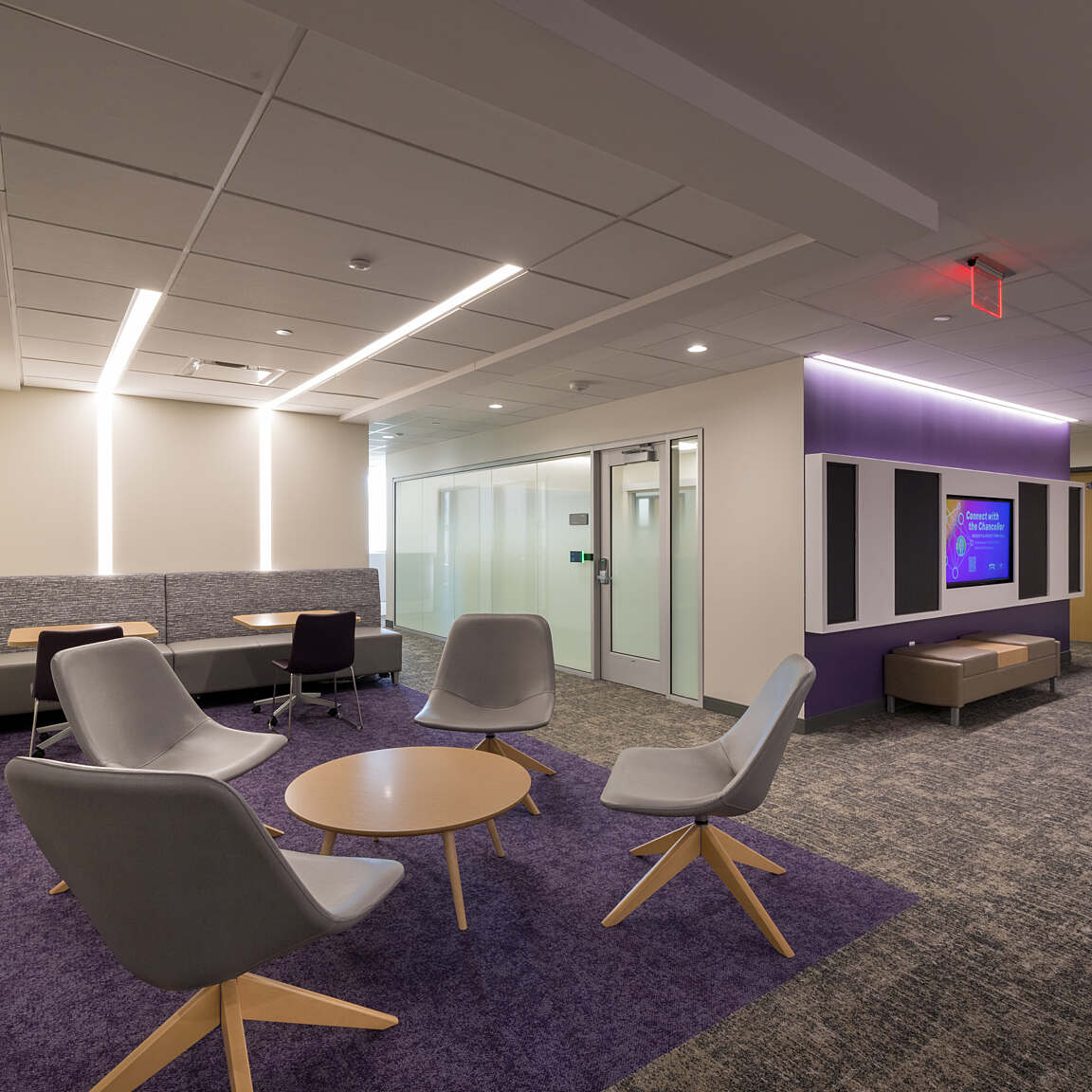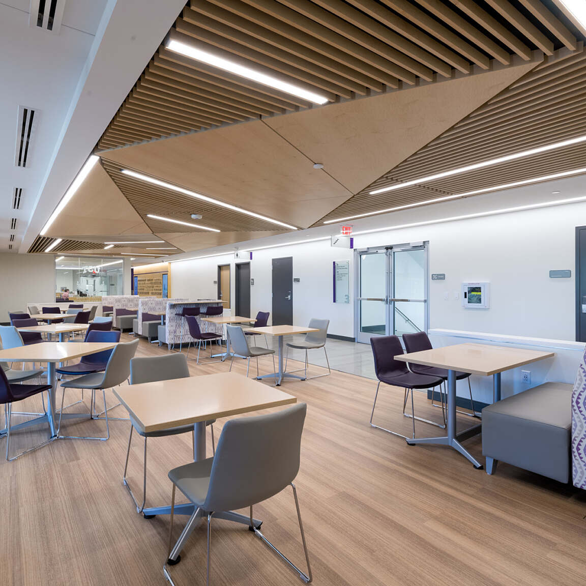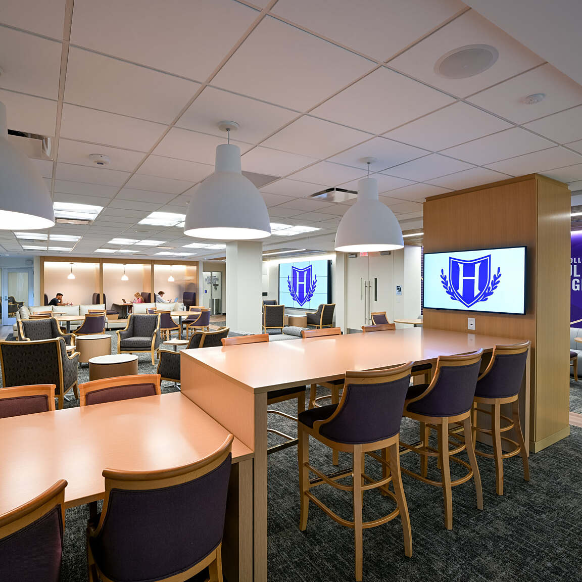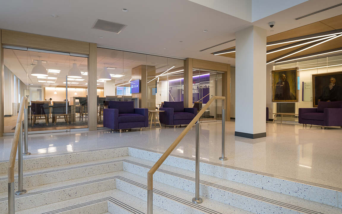 This is the renovation of 60,000 SF in a 1960s, four-story building. Sadler Hall was the original administration building, but was re-purposed to house classrooms, a student lounge, a gaming lab and faculty offices. Classroom sizes range from ten seats to 30 seats, each with extensive A/V capabilities.