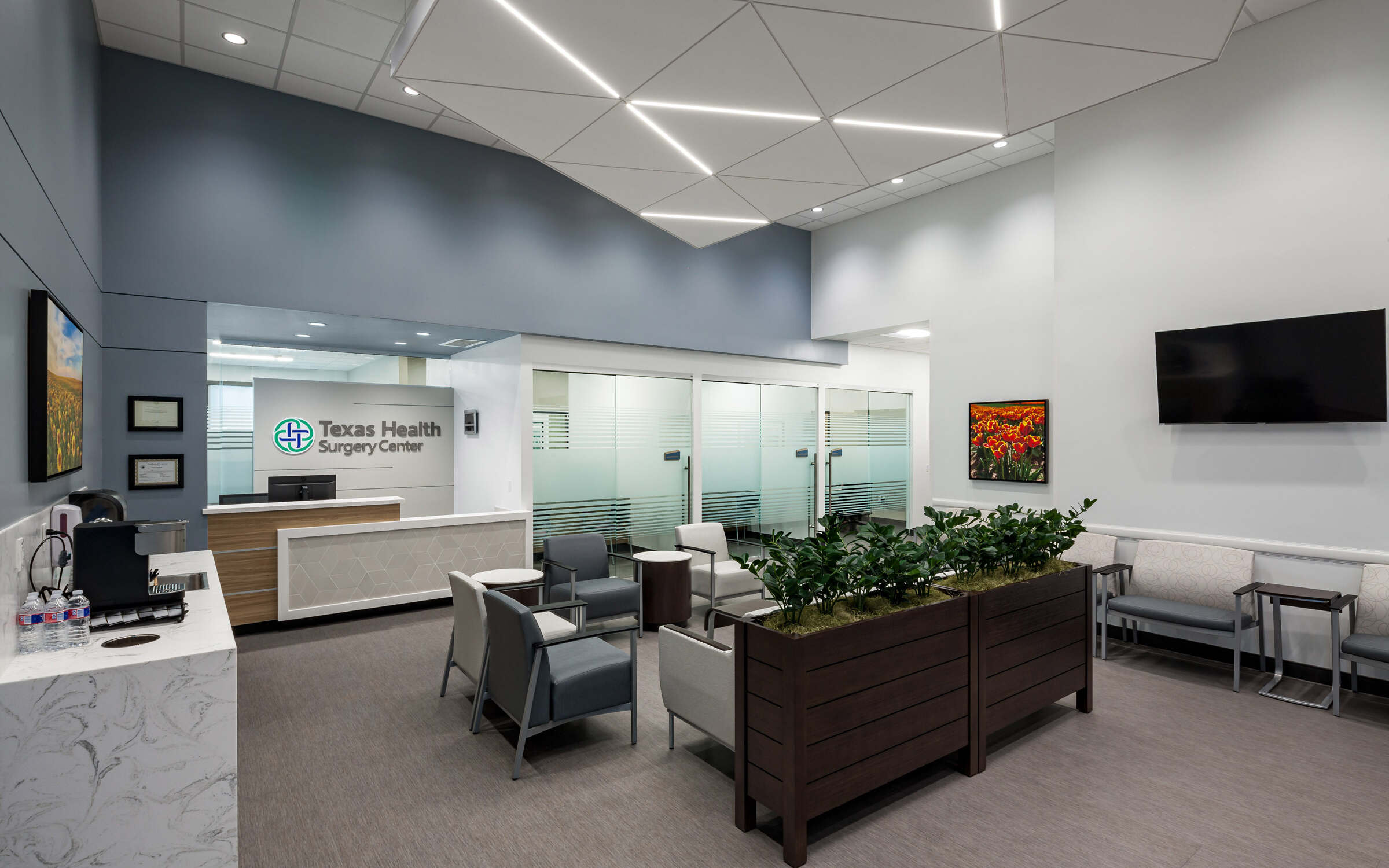 The Texas Health Surgery Center- Waxahachie is a state-of-the-art facility spanning 14,500 square feet, seamlessly integrating into the larger medical complex. Housing three operating rooms and two procedure rooms, the ambulatory surgical center is supported by a comprehensive support infrastructure featuring six pre-op bays, four post-anesthesia care unit (PACU) bays, two private recovery rooms, and a dedicated step-down area.
