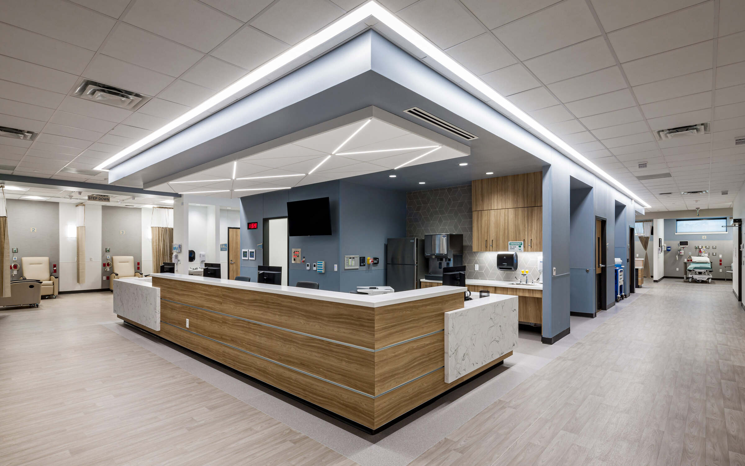 This facility embodies a modern aesthetic that skillfully blends traditional masonry elements. Beyond its aesthetic appeal, the strategic design of the ASC within the larger complex optimizes operational efficiency and fosters a holistic approach to patient care. Thoughtful spatial planning ensures seamless transitions between pre-operative, operative, and post-operative phases, with a focus on patient comfort underscored by the inclusion of private recovery rooms and a dedicated step-down area.