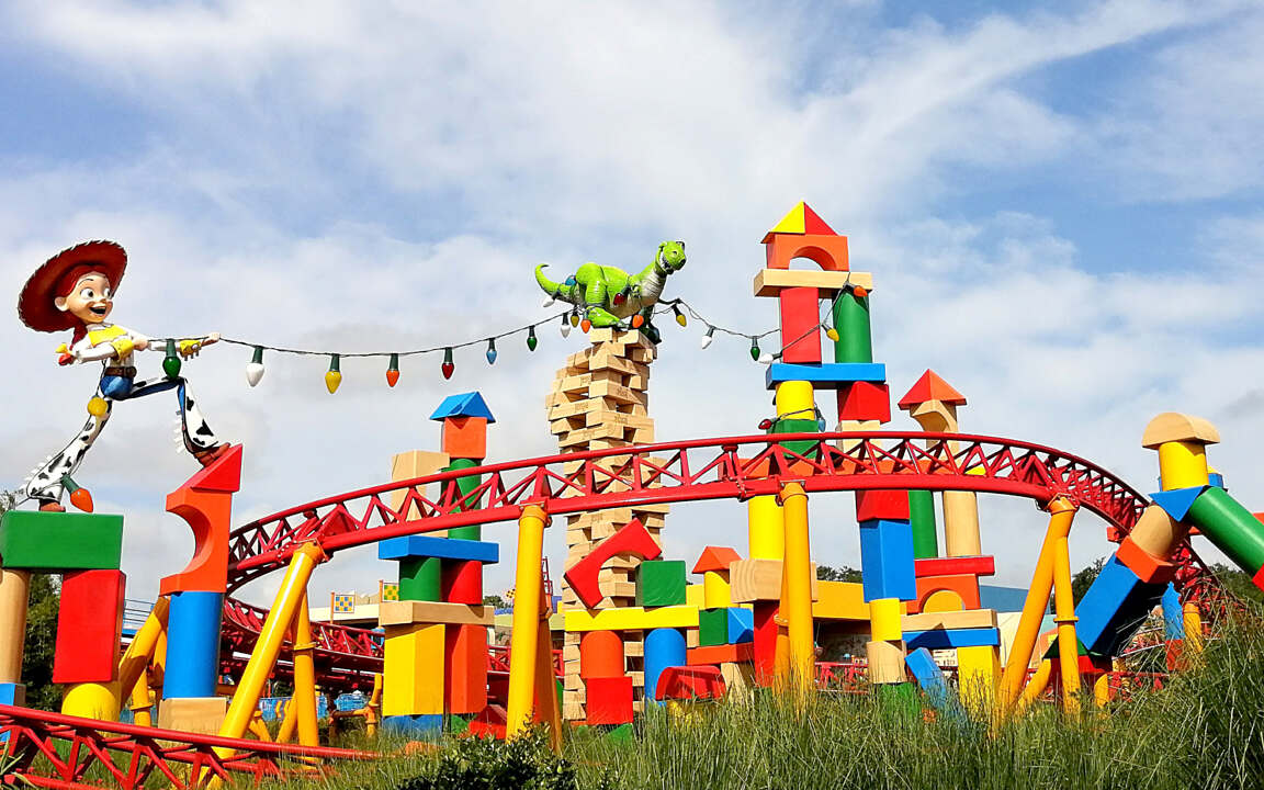 Toy Story Land at Disney’s Hollywood Studios offers an immersive and playful escape into the colorful, oversized world of Andy’s backyard, where guests are transported into the vivid imagination of the beloved Toy Story films. This 11-acre themed land shrinks visitors down to the size of toys, surrounding them with larger-than-life objects such as building blocks, plastic buckets, shovels, and game board pieces, all of which were “assembled” by Andy as part of his grand imaginative play. Every corner of the land is carefully designed to evoke a sense of wonder and whimsy, with its details meticulously crafted to reflect the playful, imaginative nature of childhood.