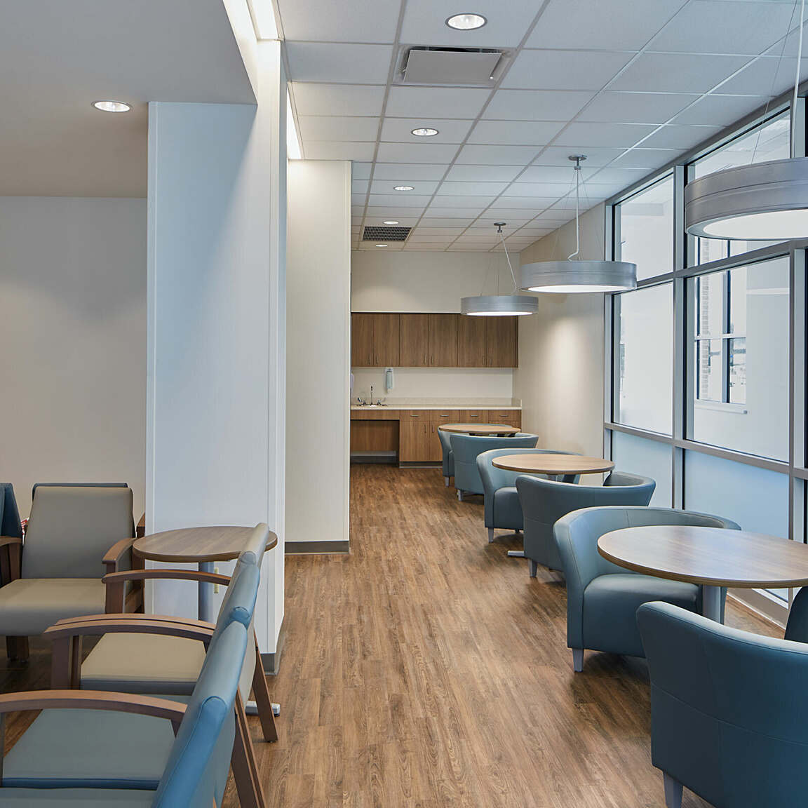 Trinity Medical is also designed for ease of access and movement for all users. Grace prioritized separating staff/patient traffic from public/visitor traffic as well as separating outpatient flow from inpatient flow. The open-front configuration provides public and outpatient access to services, while a restricted back corridor is utilized for staff and service access. Strategic department adjacencies further maximize staffing efficiencies and reduce travel distances.