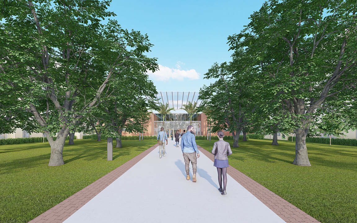 The student residence will provide for 2-bedroom shared bath, apartment style 4-bedroom 2-bath units, and RA suites. The new hall will also include student study rooms, lounges, laundry facilities, student kitchenette, administrative offices, storage, and common spaces. Outdoor activity areas include a basketball court, sand volleyball court and a recreation field. The project design incorporates sustainable features and systems.