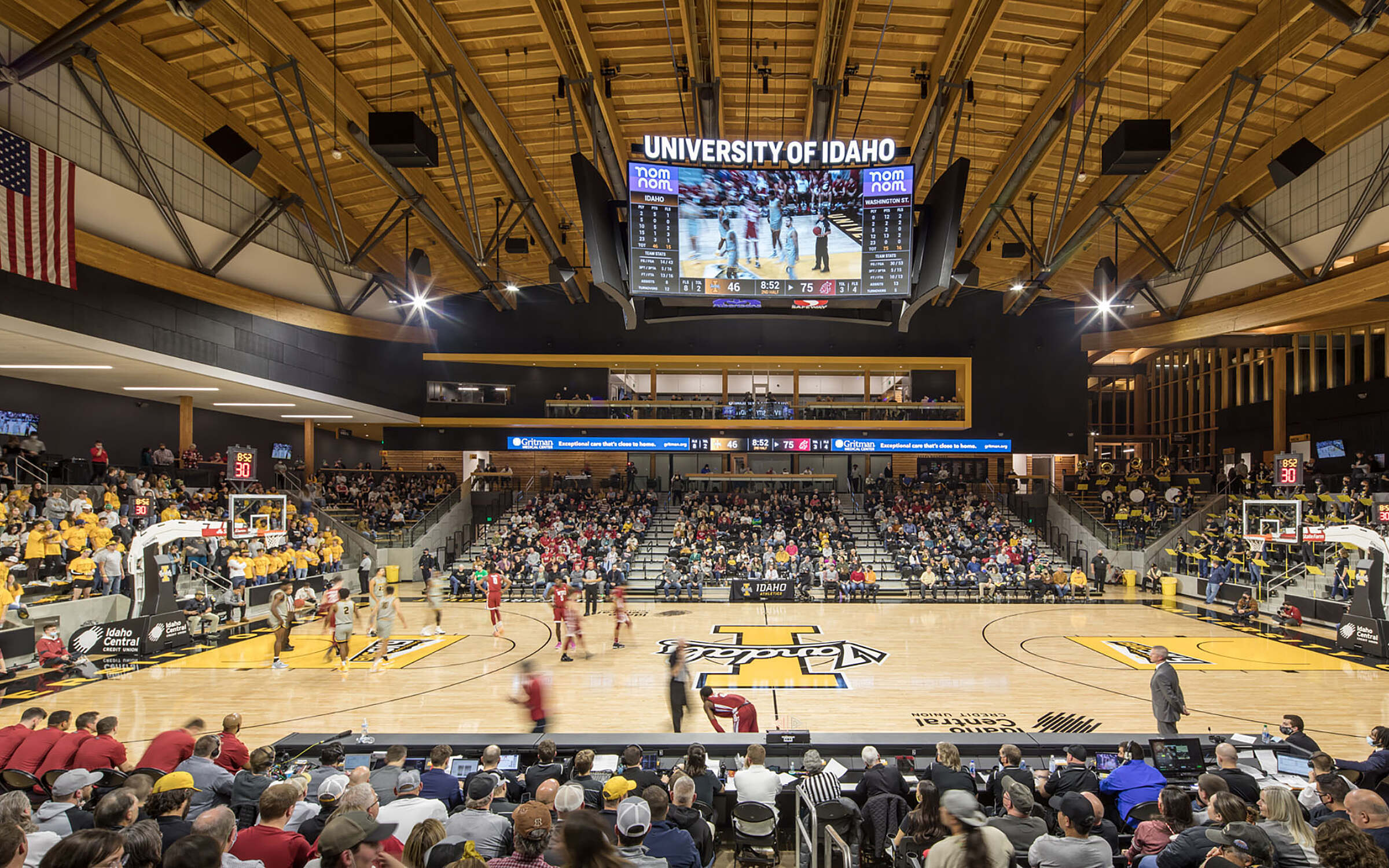 The new 4,700-seat arena at the University of Idaho is a state-of-the-art venue designed to be the home for Vandals men’s and women’s basketball teams, while also serving as a dynamic gathering place for a variety of student events, including concerts, academic conferences, and more. Located on the north side of the Kibbie Dome, the Arena has quickly become a source of excitement, rallying fans and boosting recruiting efforts, while positioning the University’s athletic facilities on par with other Division I universities.