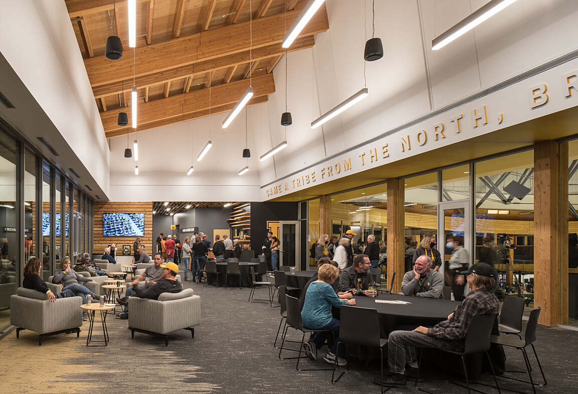 The arena features vibrant social spaces designed for team members and fans to gather, reflect on the game, and connect. These areas offer a comfortable setting for conversations and celebrations, fostering a sense of community and excitement before and after events.