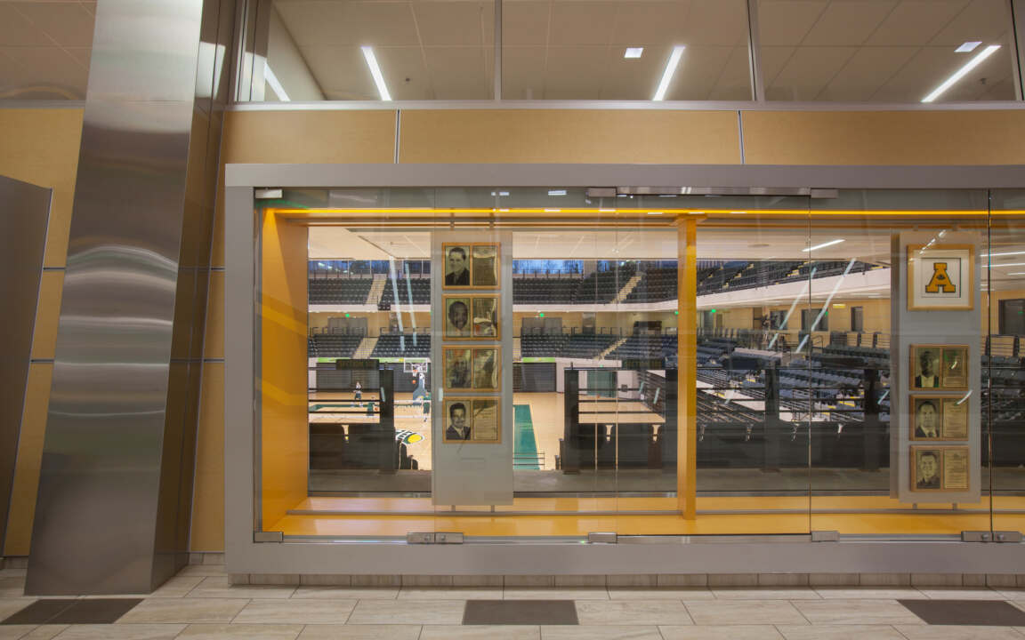 Our team in association with McCool Carlson Green Architects designed the Arena to also include an 800-seat auxiliary gym, a state-of-the-art sports medicine suite, an indoor two-lane walking and jogging track, an athletic fitness center, a gymnastics training and competition gym, a 1,500 SF divisible meeting room and a separate training and strength conditioning facility for athletes.