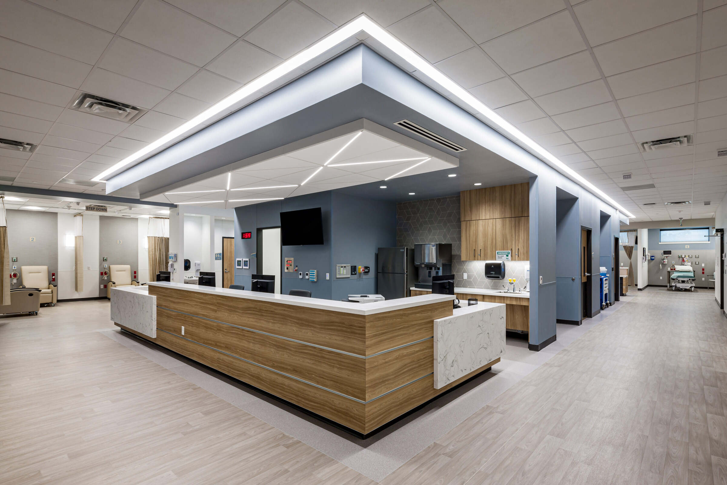 The ambulatory surgery center includes several flexible design components with plenty of room for future expansion, including space for two additional Operating Rooms and an additional Procedure Room as the surgery center program expands.