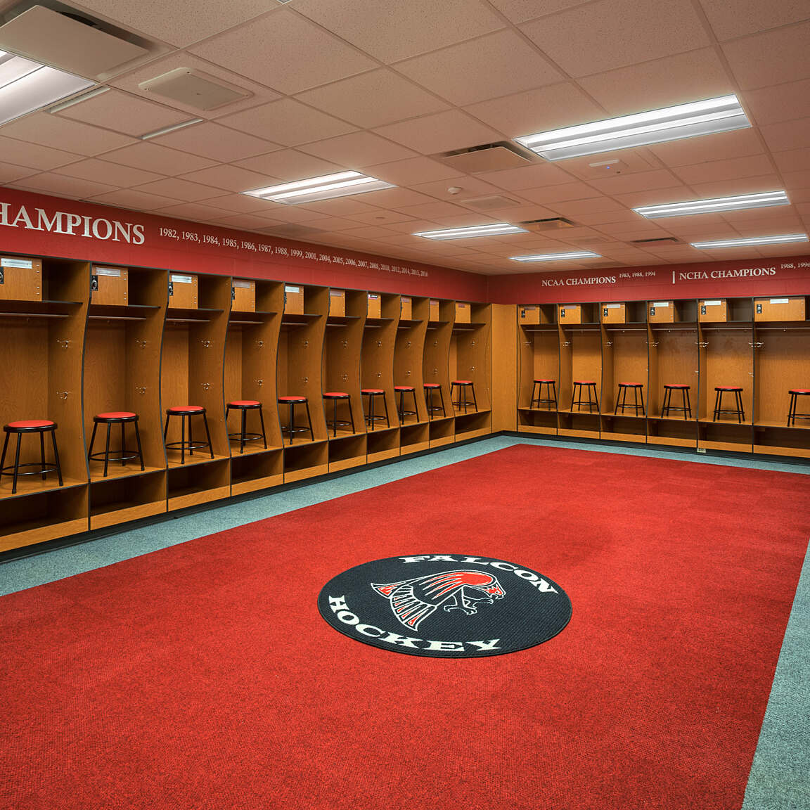 The new design replaces substandard and outdated athletic and instruction facilities. The Hunt Arena ice rink seats 1,400 with a combination of fixed seats and bleachers. The redesigned concourse eases navigation, and the back-loaded seating improves visibility and functionality for fans. The arena also boasts a new scoreboard and oversized 18’x10’ horizontal video screen.