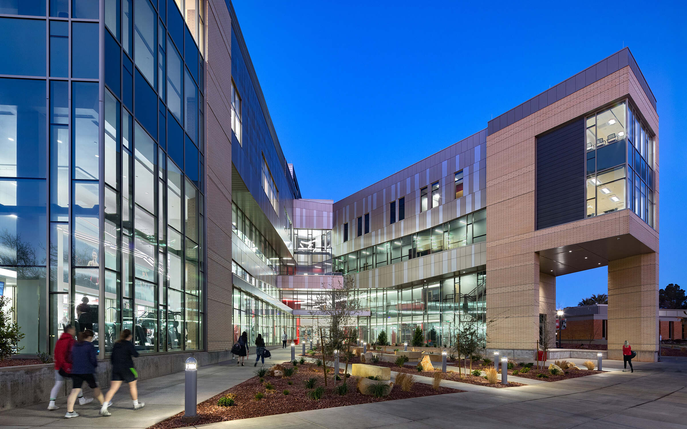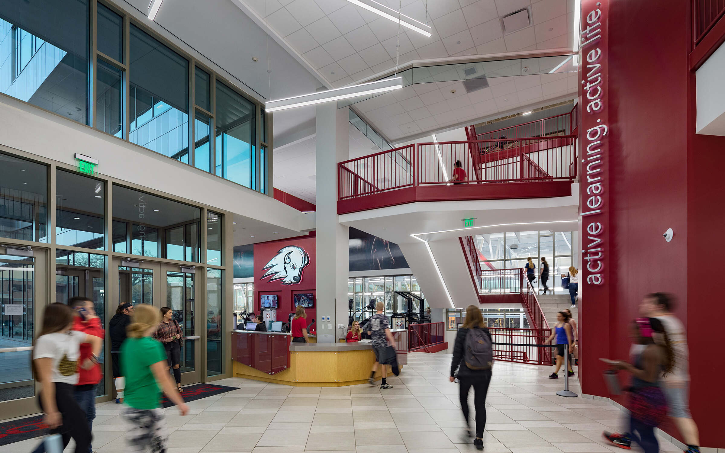 Beyond academics, the facility plays a vital role in campus recreation, intramural sports, and athletics. It features a fully equipped fitness center with cardio machines, weight training, and functional fitness areas, along with an indoor track, a two-court gymnasium, multi-activity courts, and a climbing wall. These spaces are designed to promote physical activity and overall wellness for students, faculty, and the broader university community.
