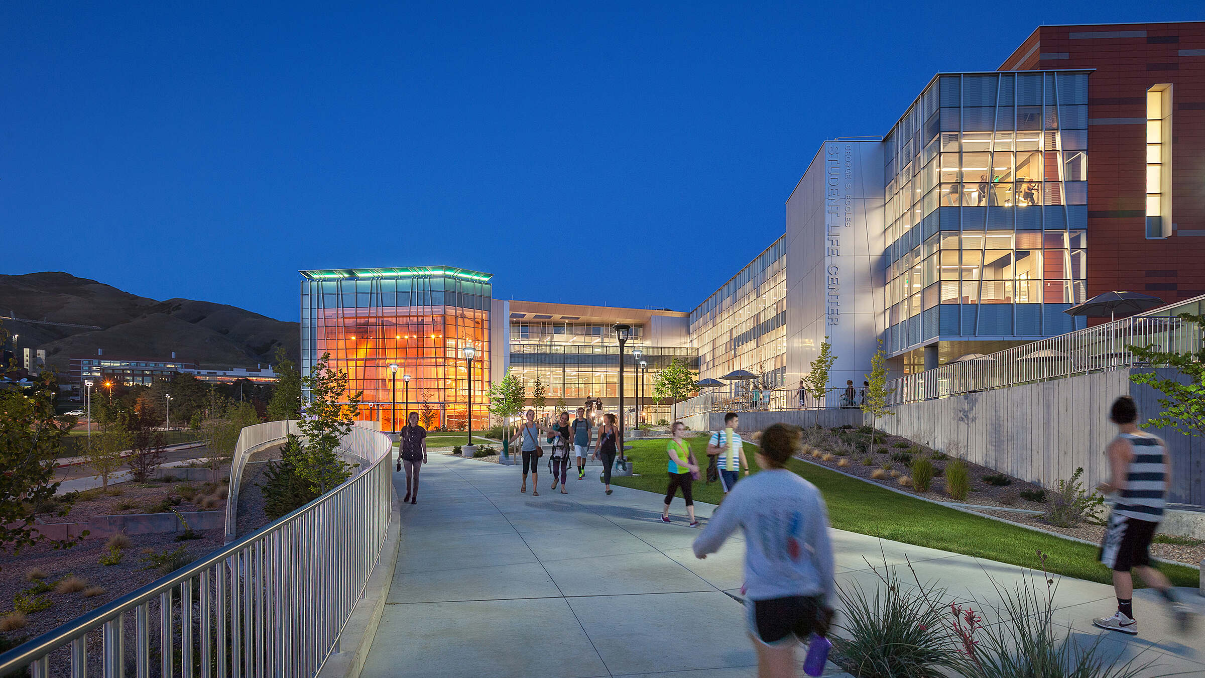 Inspired by Utah's distinctive desert landscape, the building’s design incorporates a playful and uplifting aesthetic. The color palette draws from the vibrant orange and red hues of the surrounding landscape to the south, while the angular surfaces throughout the structure evoke the region's iconic red rock formations. The design not only connects to the natural surroundings but also reflects the energy and spirit of the students it serves, creating an environment that is both inspiring and functional.
