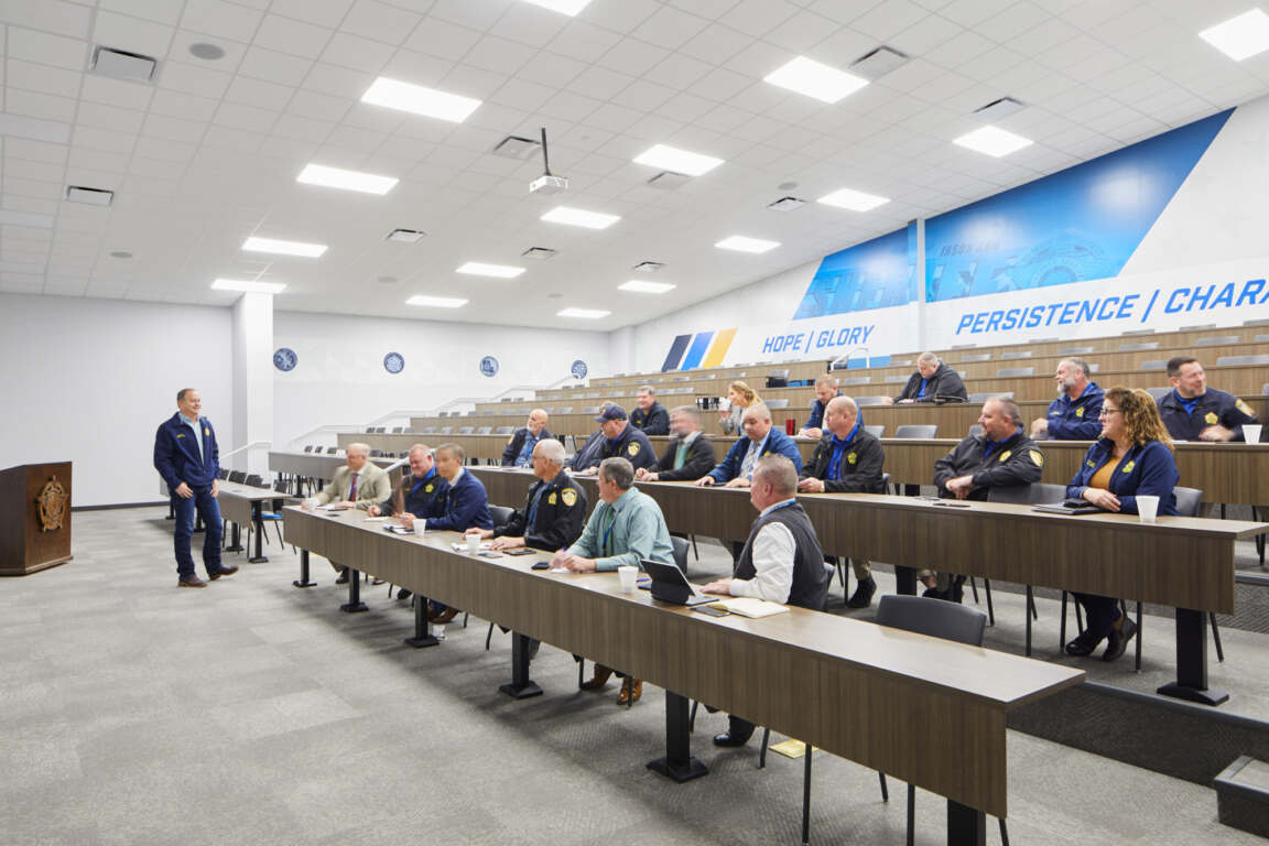 The facility includes two full-size, flexible classrooms designed for officer training, which can also function as the department's "nerve center" for issuing critical messages during emergencies.